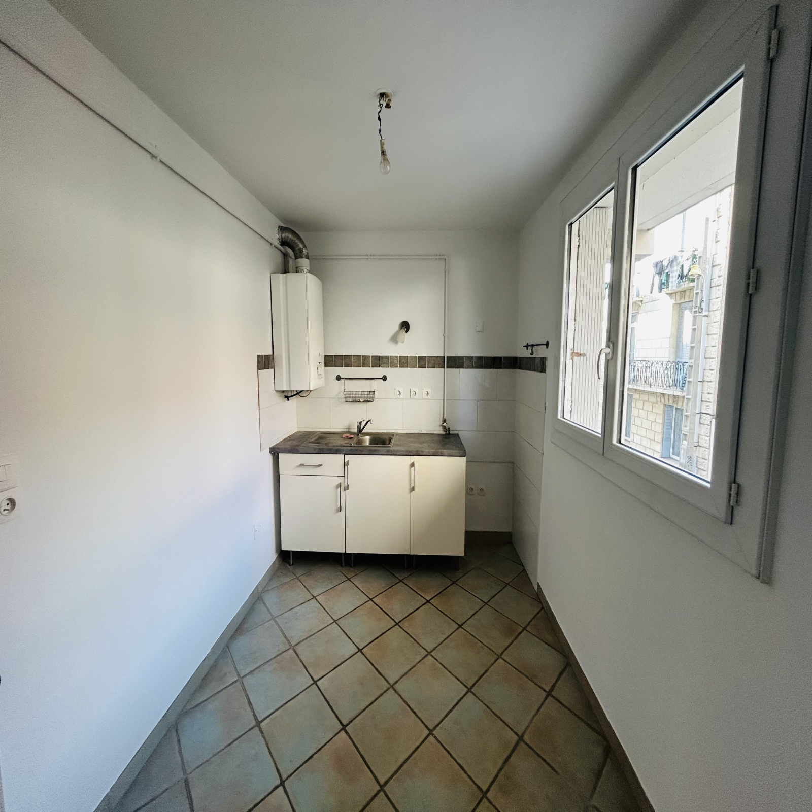 Entrée desservant une cuisine indépendante aménagée, cellier attenant, beau séjour et belle chambre plein sud, donnant sur terrasse, salle d'eau, WC indépendant.