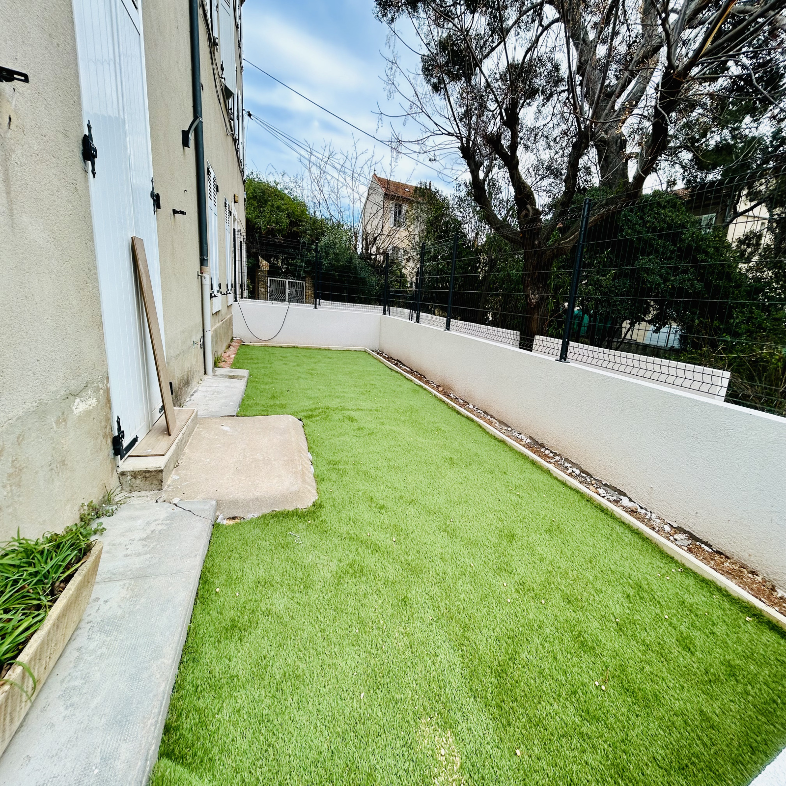 Appartement en rez-de-jardin de Type 2 de 44m², entierement rénové, composé d'un séjour avec cuisine de 27m² donnant sur terrasse/jardinet de 33m² exposée Sud, chambre avec salle d'eau et wc séparés + Une place de parking privée et un cellier.