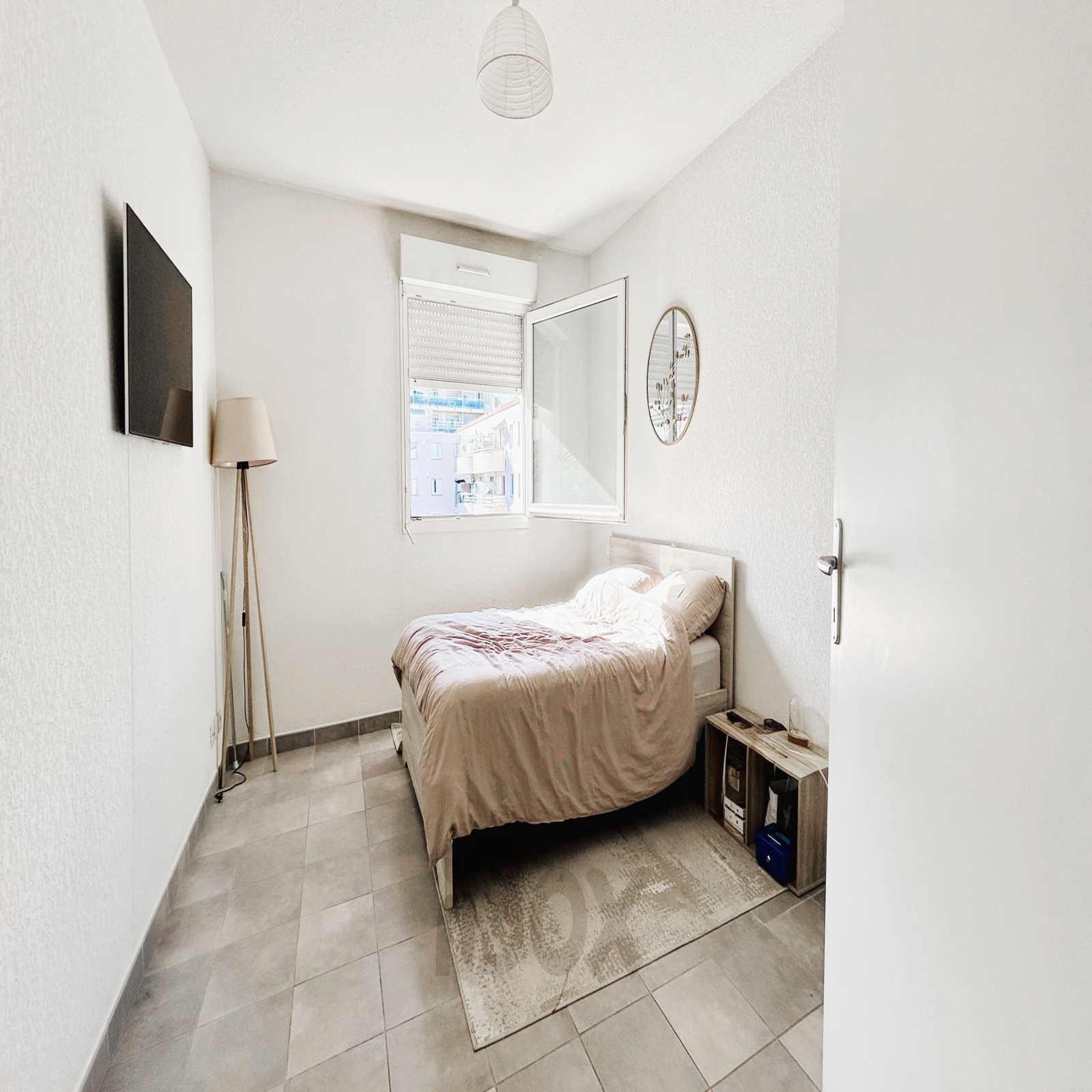 Ravissant appartement de Type 2 de 48m², en 4ème et dernier étage, composé d'un hall d'entrée avec deux rangements desservant un séjour lumineux avec une vue dégagée et sans vis-à-vis, une cuisine séparée aménagée (avec four et plaques), une grande chambre de 14m², une salle de bains et toilettes séparés + Possiblité d'une place de parking privative en sous-sol sécurisée en supplément du prix.