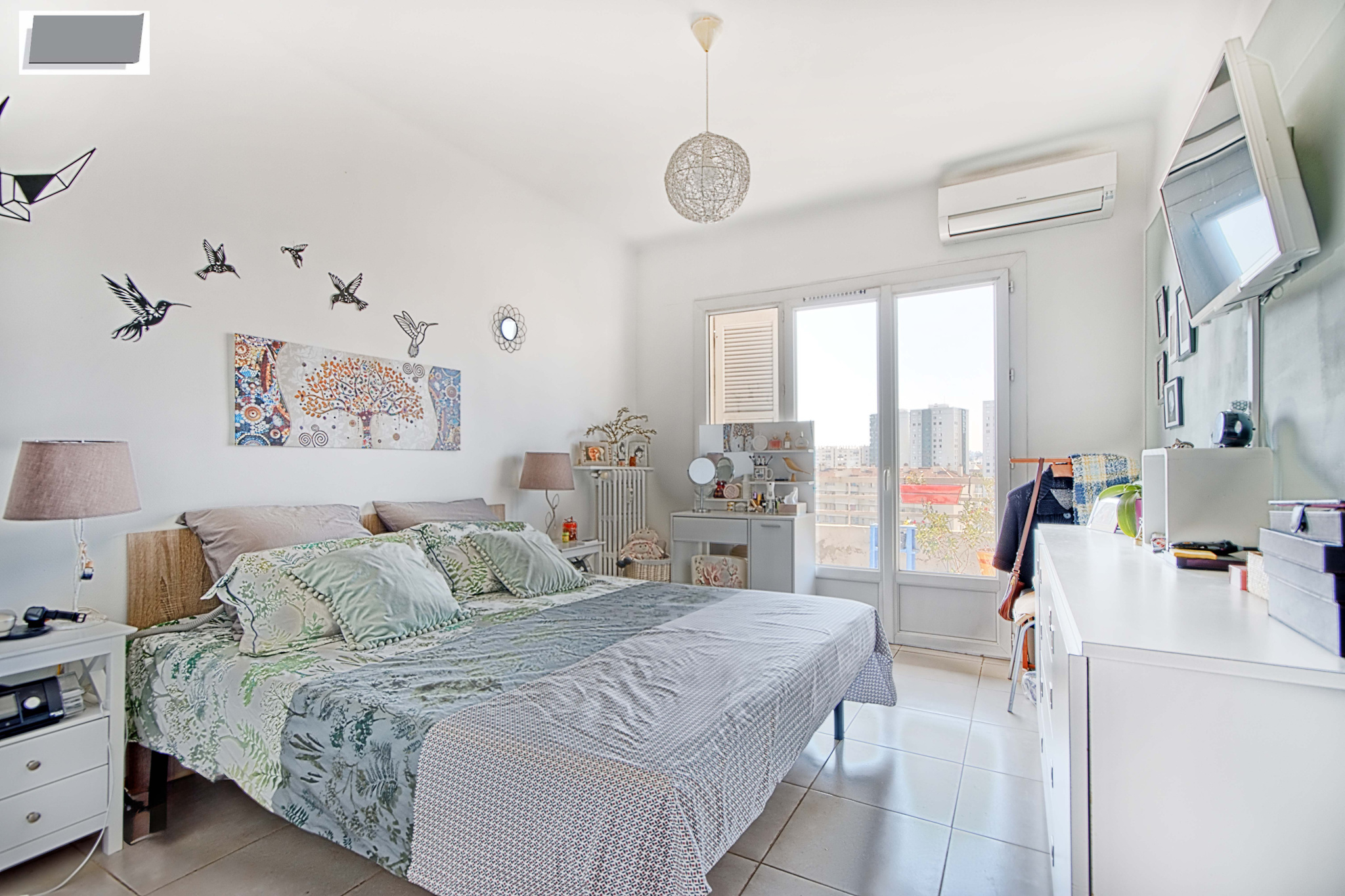 Il se compose d'une entrée donnant sur un lumineux séjour avec accès sur la terrasse Sud, deux chambres avec placards, cuisine indépendante donnant sur balcon, salle de bains avec fenêtre et wc.