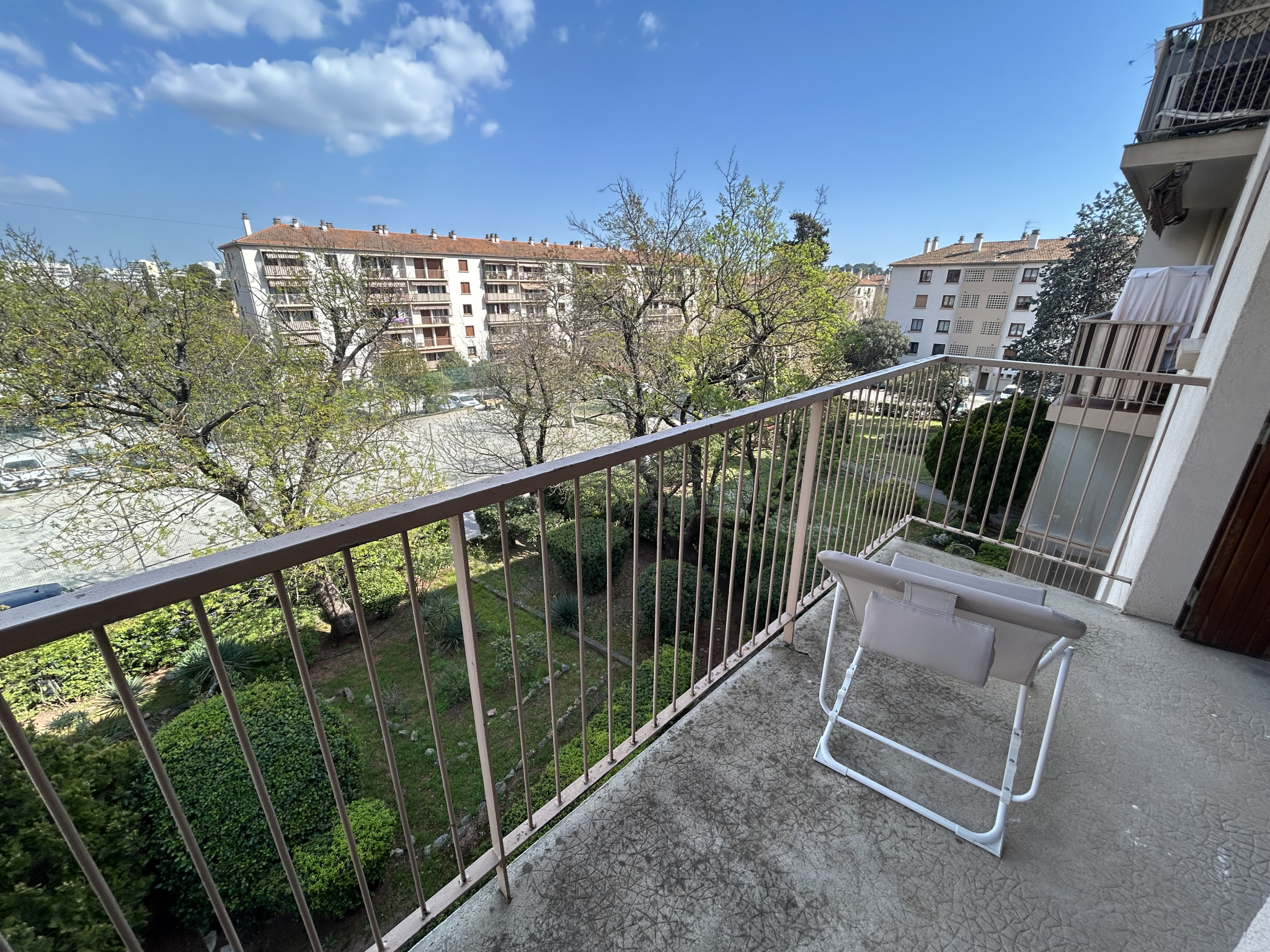 Toulon Est quartier les Ameniers: bien placé dans un quartier résidentiel très recherché, au calme, au sein d'une copropriété de 1970 composée de 6 bâtiments (de 4 étages seulement), très bien entretenue , sécurisée, dans un beau grand parc avec un parking collectif , appartement de type 3, traversant, bien exposé, de 57,70 m2 avec un balcon de 5,40 M2 et une cave. Un garage dans la copropriété possible avec supplément de prix. L'appartement comprend un agréable salon donnant sur le balcon sans vis à vis avec une vue sur le parc, une cuisine séparée aménagée avec un séchoir, deux belles chambres, une salle d'eau et un wc indépendant. Double vitrage, climatisation, chauffage électrique individuel, eau chaude individuelle gaz. Honoraire d'agence à la charge du vendeur. A voir vite!
