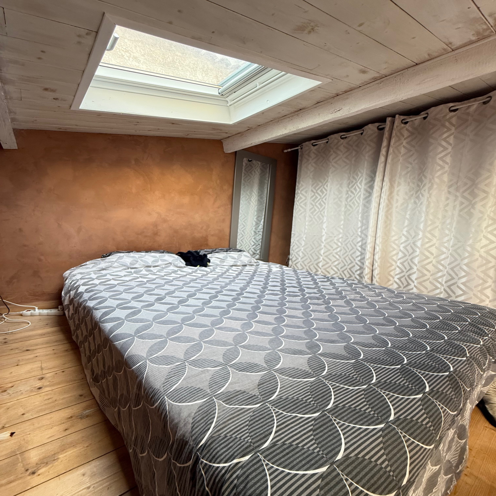 A l'étage une chambre avec armoire et rangements sous combles.