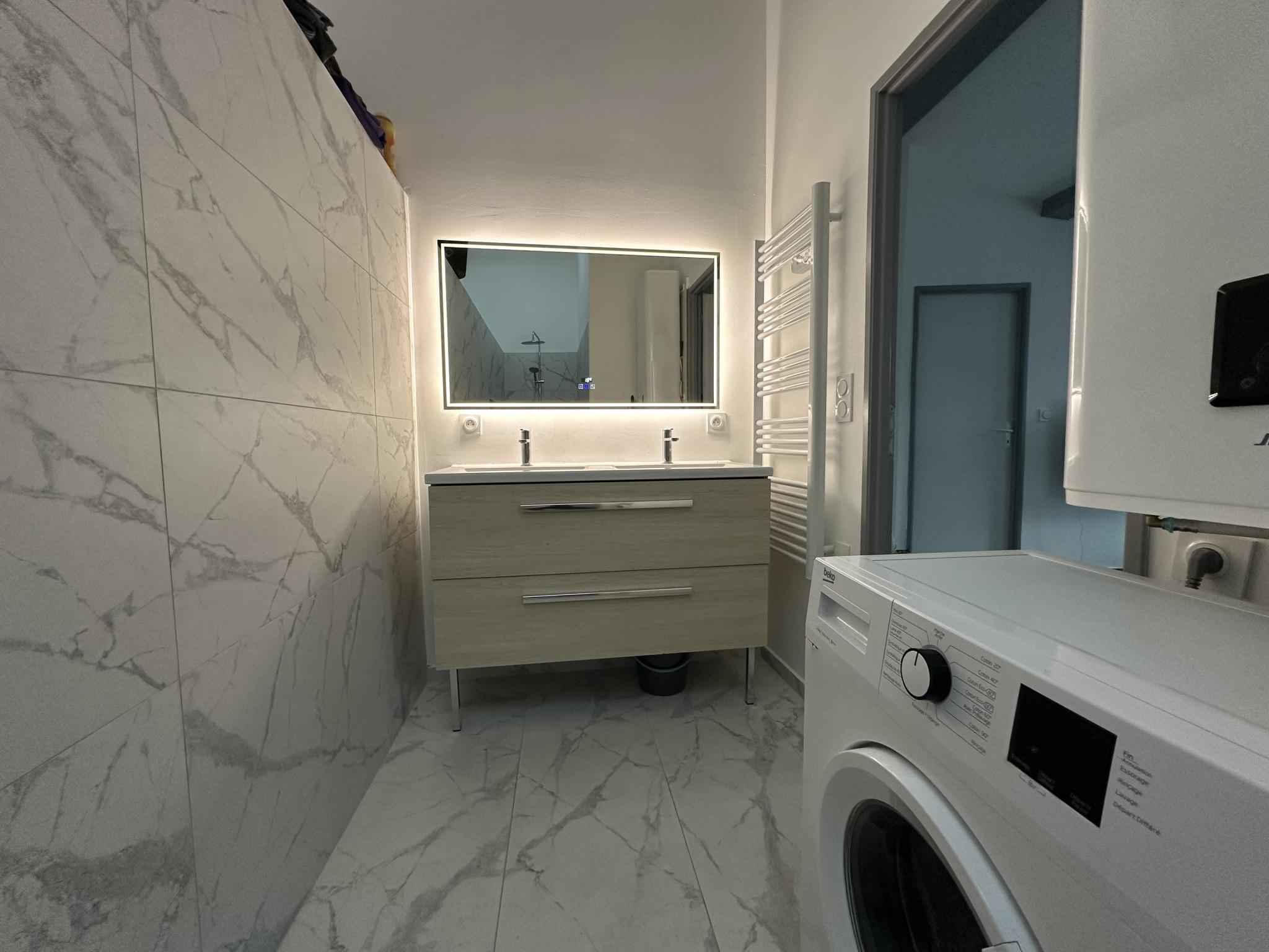 Elle se compose d’une pièce de vie lumineuse avec cuisine ouverte, de deux chambres, d’une salle d’eau moderne et de nombreux rangements optimisés.