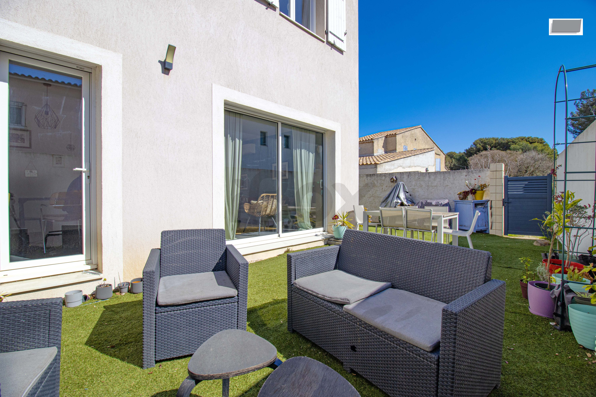 Dans une impasse très calme, maison mitoyenne entièrement rénovée avec de belles prestations.