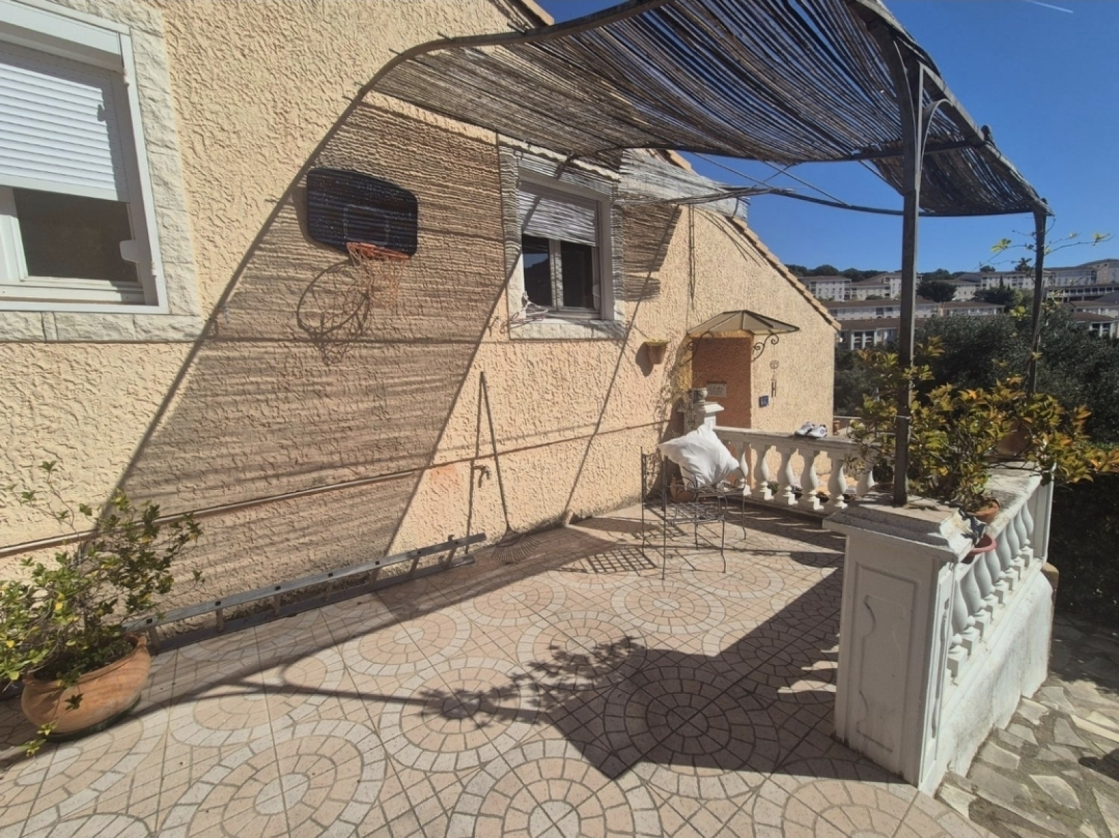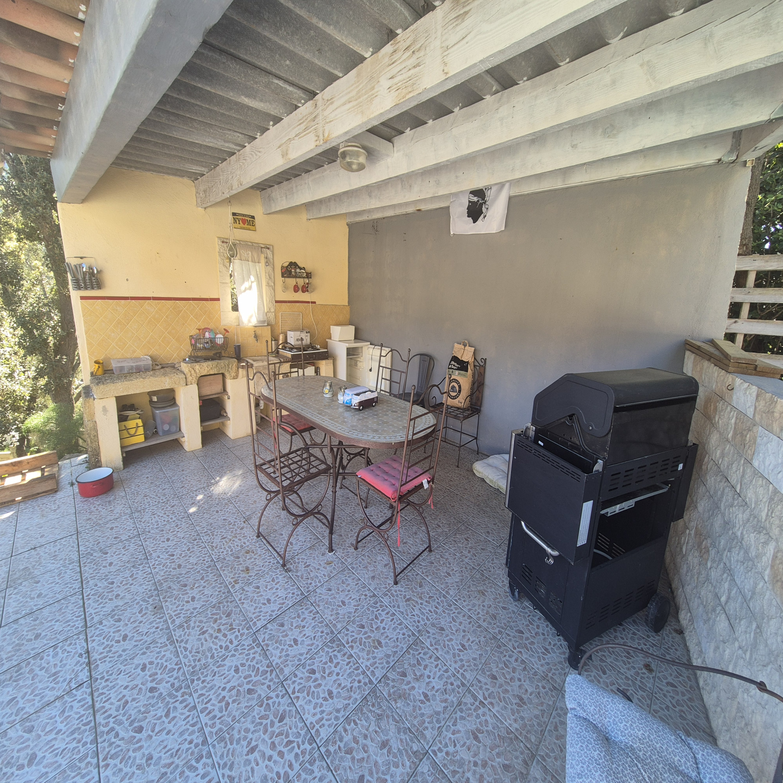 L'extérieur offre deux belles terrasses — dont une de plus de 30 m² accessible depuis le séjour et la cuisine — une piscine et une cuisine d'été couverte, idéales pour profiter de l'espace extérieur. Un garage de 30 m² et une cave/buanderie de 15 m² complètent le bien.