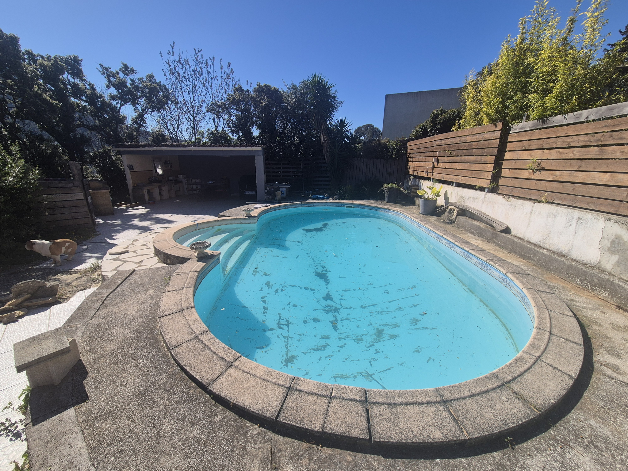 Le terrain, en partie très pentu, ne permet pas de division parcellaire et est soumis à l'obligation de débroussaillage. L'assainissement est assuré actuellement par une fosse septique ; quelques travaux sont à prévoir, notamment le raccordement au tout-à-l'égout.