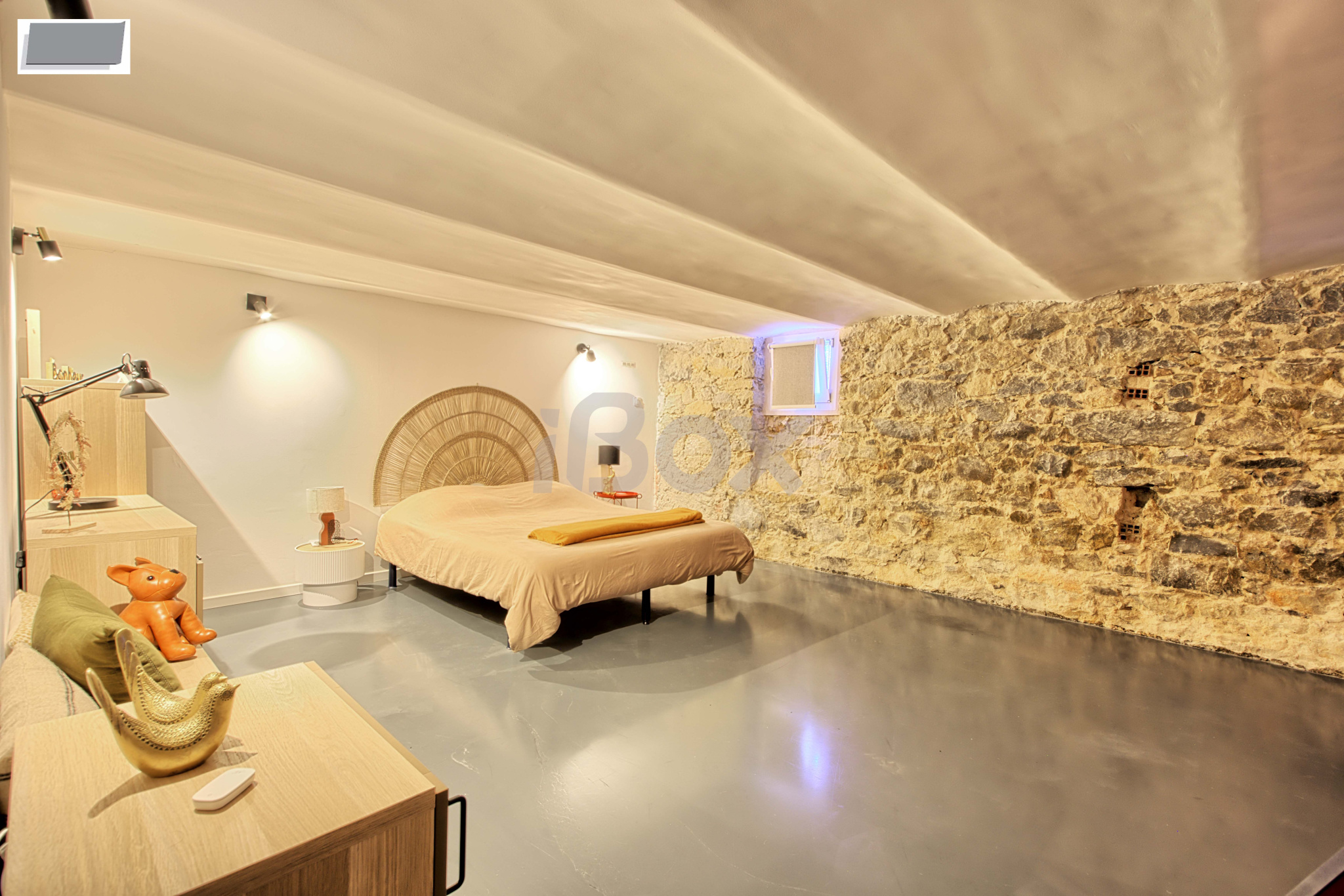 En souplex une grande chambre de 29m2 (possibilité de créer une salle d'eau) avec le charme de l'ancien.