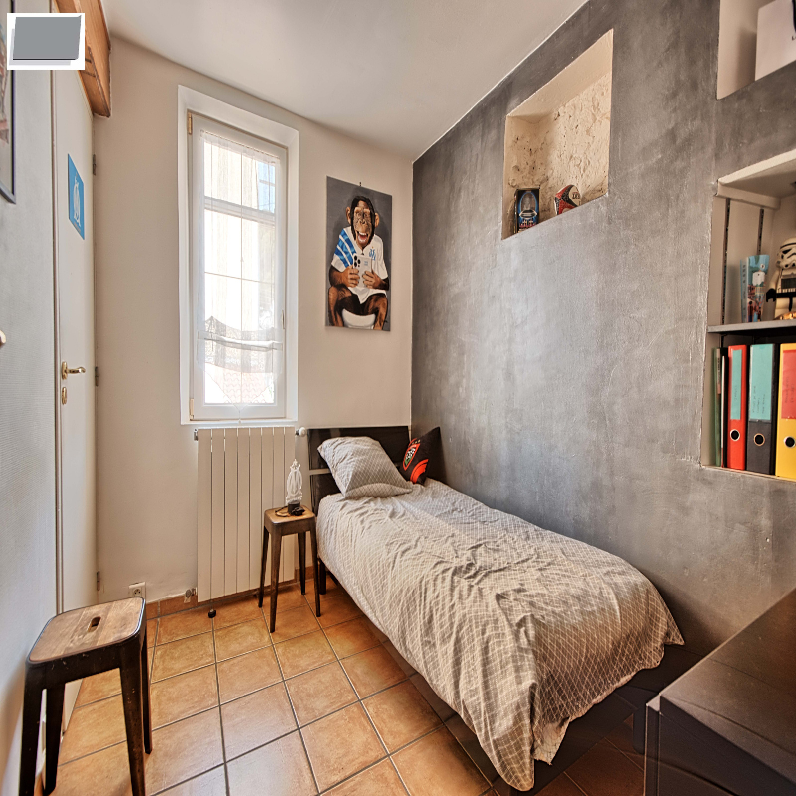 En dernier niveau, les combles ont été aménagés en une quatrième chambre sous toiture, offrant un espace cosy et polyvalent.