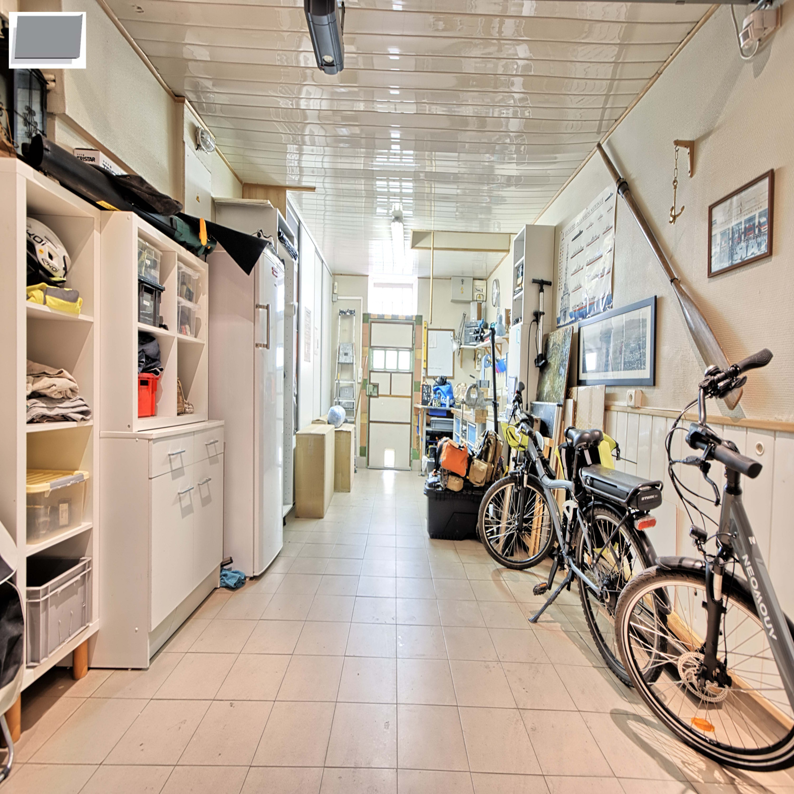 Une buanderie avec rangements et un grand garage (2 véhicules) sont directement accessibles depuis la cuisine. Un grand espace de stockage a été aménagée dans les combles du garage.