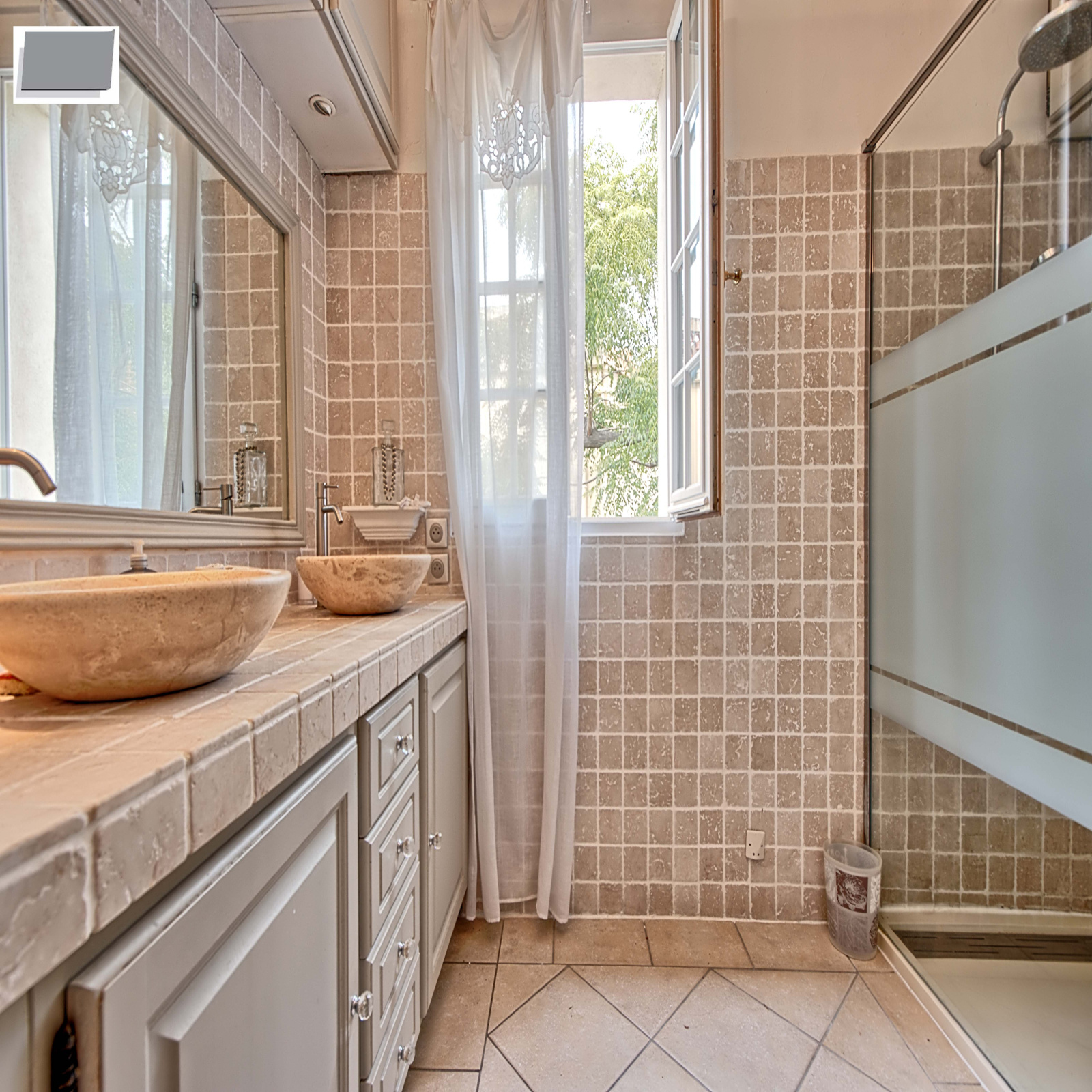 A l'étage : une chambre avec accés aux combles, deux autres chambres avec dressing, une salle d'eau avec double vasques, wc séparé.