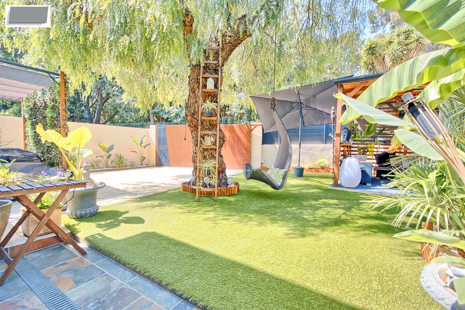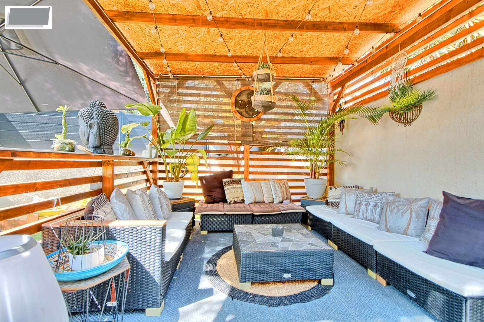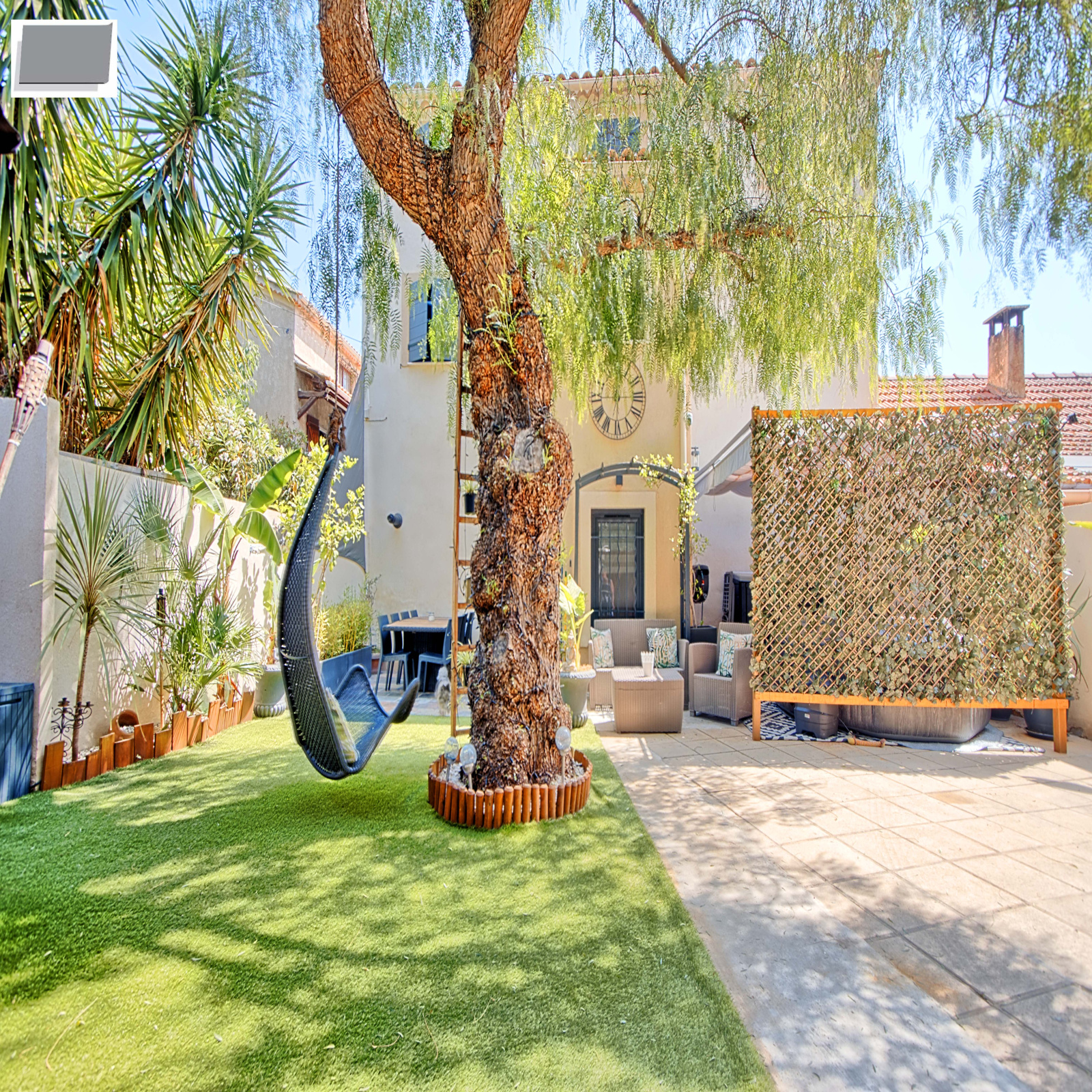 A l'exterieur, une terrasse avec son barbecue, un espace détente ombragé avec son jaccuzzi pour des moments agréables.