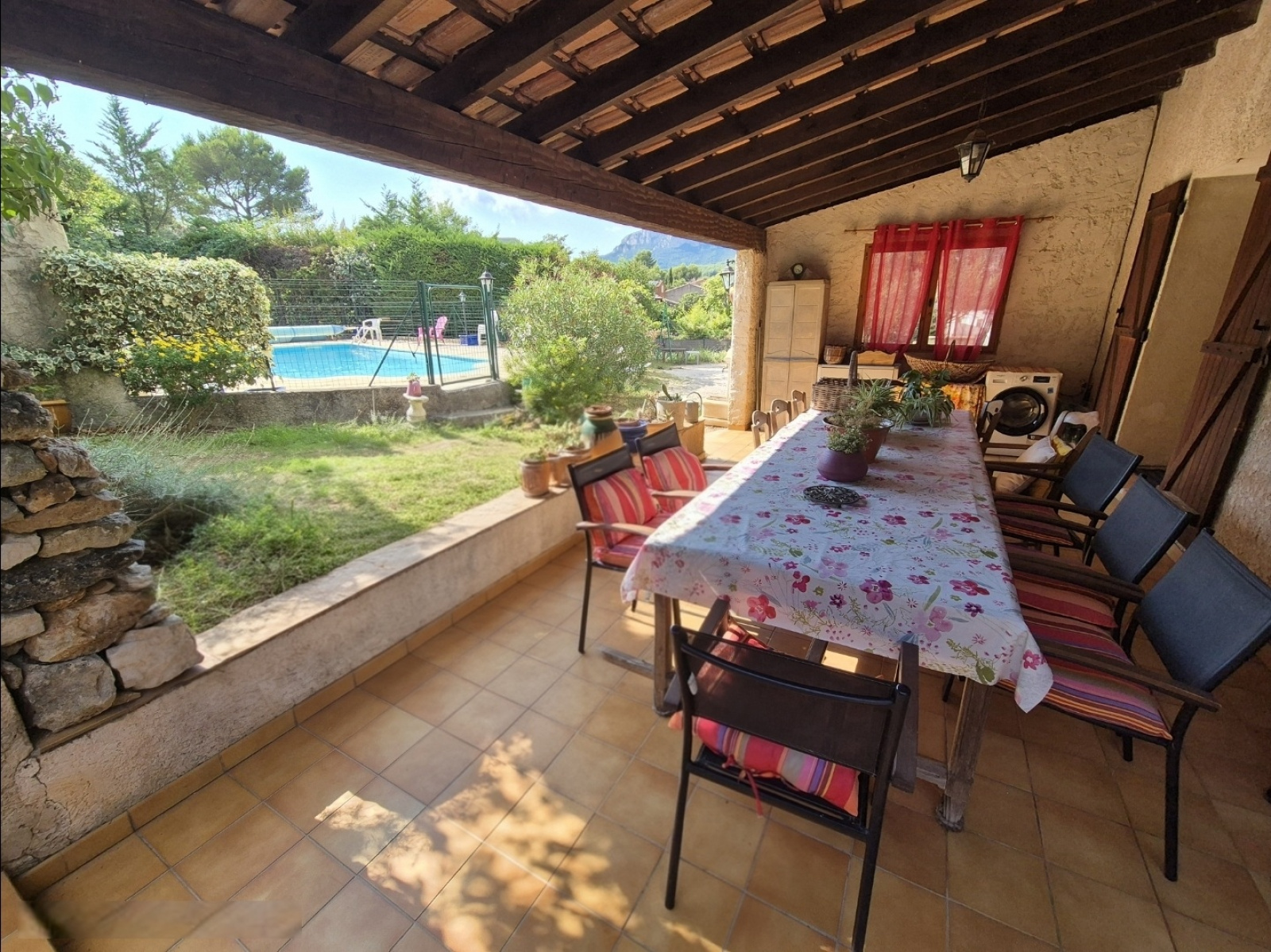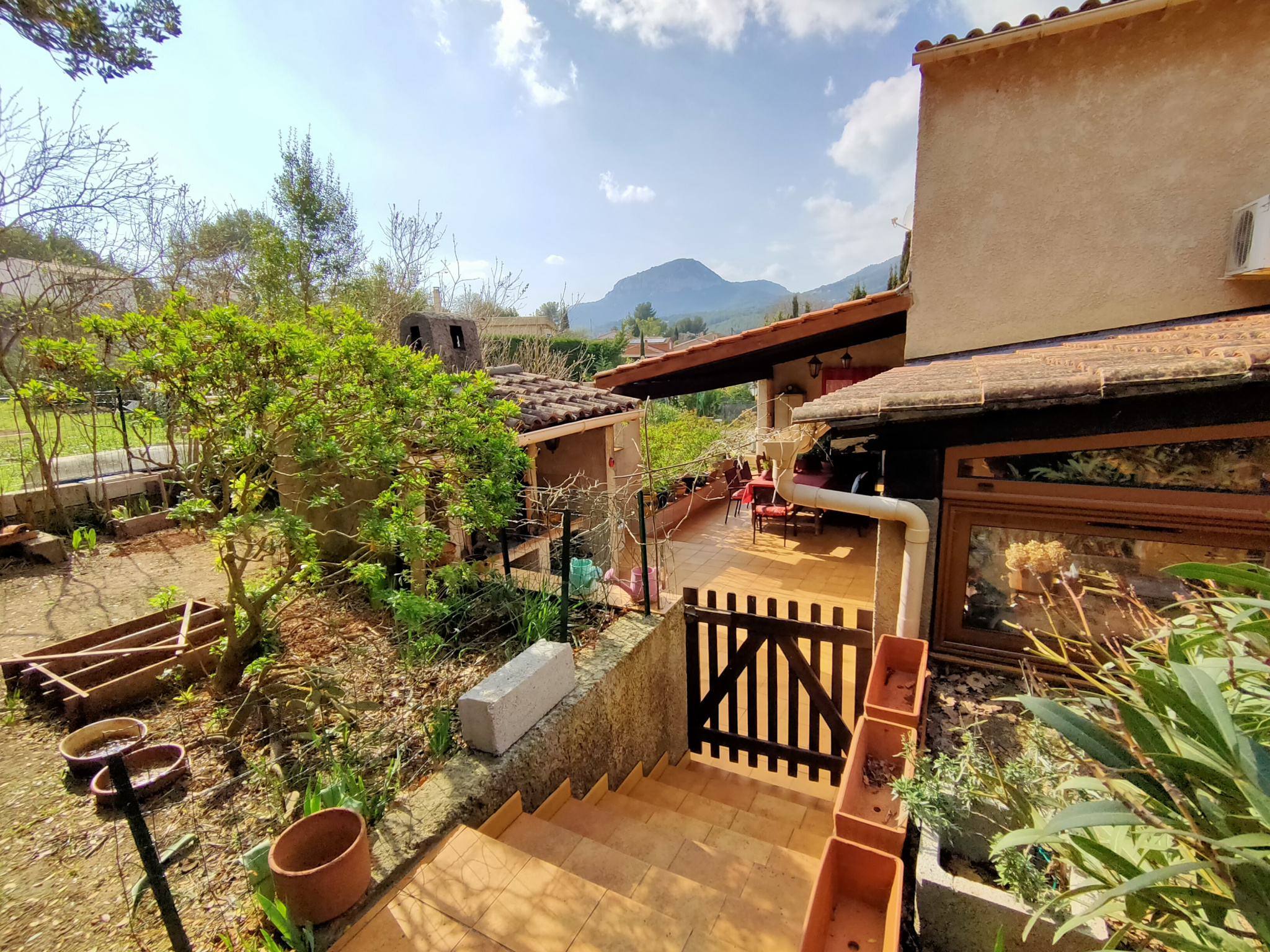 Sur la commune de Toulon, à l'Ouest de la ville, sur les pentes du Faron, une maison de de type 6 d'environ 135m² . Cette maison se compose en rez-de-chaussée: d'une entrée, d'une pièce de vie de 32m² avec cheminée, une grande cuisine indépendante aménageé et équipée, une chambre avec salle d'eau et WC séparé. A l'étage se trouvent: 2 chambres mansardées, un bureau avec placards, une salle de bains avec douche et baignoire, et un WC séparé. Attenante à la maison: un grand garage aménagé en studio avec mézzanine. Cette maison est en bon état et bien entretenue, elle dispose d'une terrasse couverte de 25m², d'une piscine 10m x 4m sécurisée, et un vaste jardin avec potagé. Maison au calme, exposée Sud et sans vis à vis. Nombreux stationements sur la parcelle.