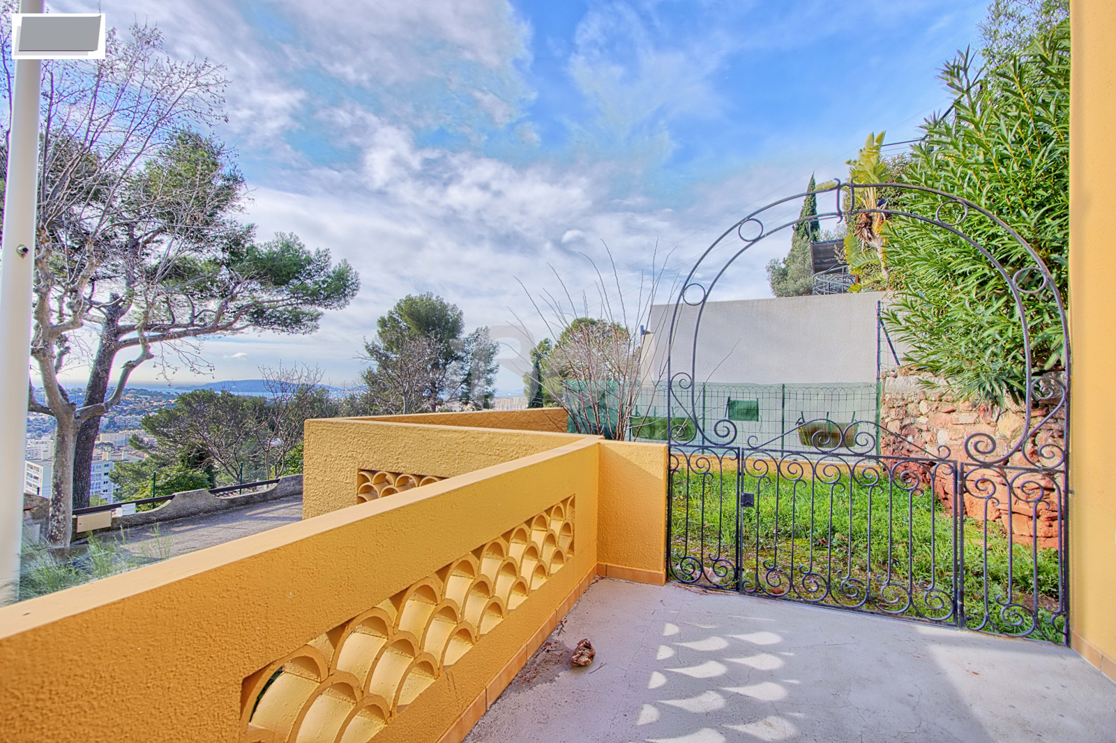 TOULON, secteur Est (Corniche du Faron), sur un terrain avec garage, jardin et terrasse de 500m², jolie maison de 150m² composée à l'étage d'un vaste séjour avec vue mer, grande cuisine indépendante de 18m², 1 chambre (15m²), salle de bains, WC et buanderie. Au niveau inférieur: salon, 2 chambres, salle de bains, WC et cellier. 2 vérandas fermées de 20m² complètent cette maison idéalement située qui peut à la fois convenir pour un projet de 2 appartements séparés ou alors, en réunissant les 2 étages, une maison familiale avec 3 ou 4 chambres.