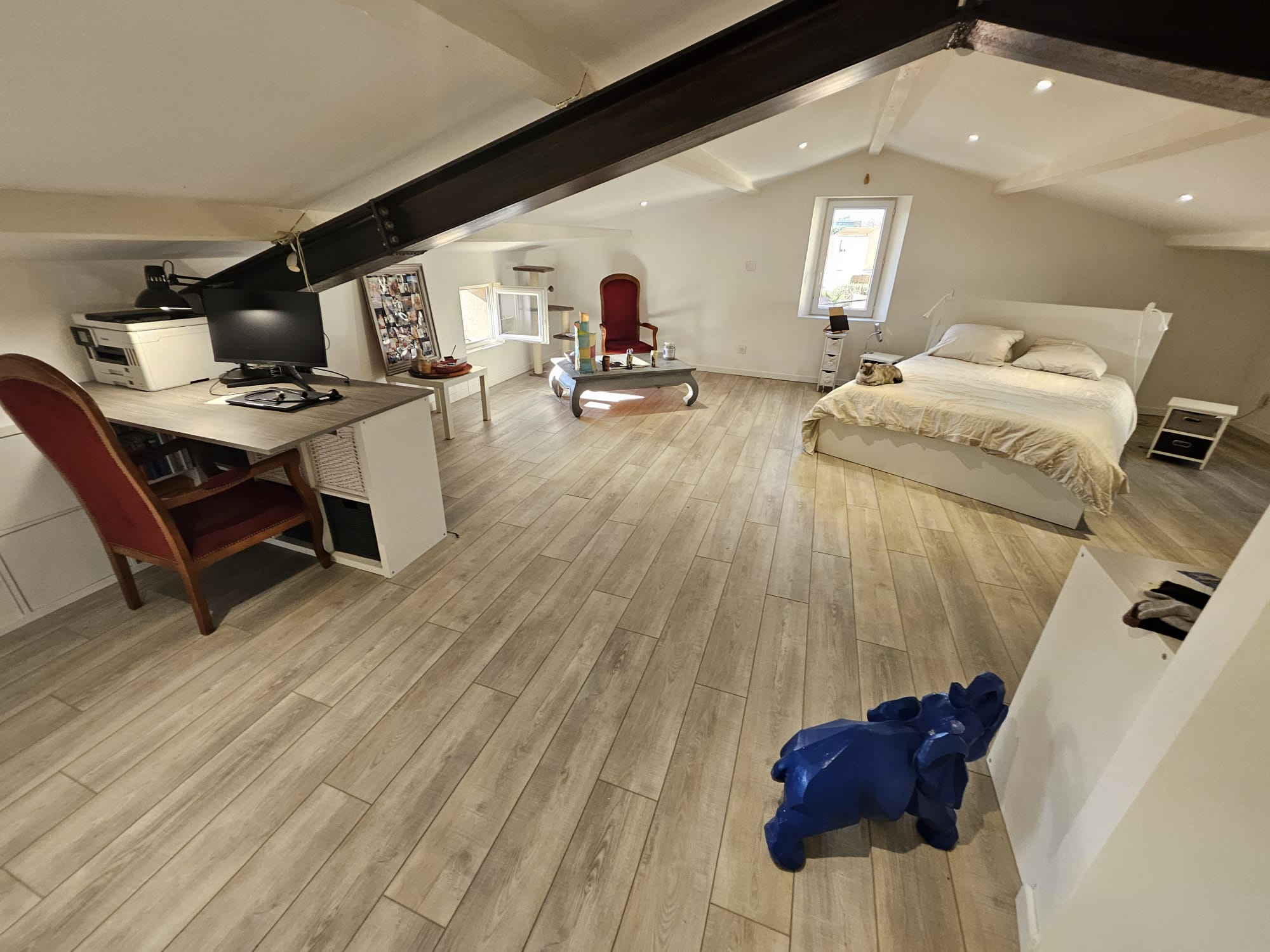 TOULON LA LOUBIERE - maison composée de 3 niveaux de 57 m2 de surface au sol pour le rdc et r+1, et 54m2 au r+2 -Vous trouverez au premier niveau un grand et chaleureux salon-séjour-cuisine ouvert, des WC séparés ainsi qu'une salle de douche incluant la buanderie. Au R+1, vous trouverez 3 chambres de 10 à 14 m2, une pièce de 6m2 actuellement utilisée comme petite chambre d'enfant (5eme chambre par conséquent si besoin ou chambre d'amis) qui pourra conserver son usage ou être utilisée comme dressing ou bureau par exemple. Ce niveau est complèté par une grande salle de bain avec meuble double vasque, WC et grande baignoire - Au R+2, vous trouverez une vaste pièce de 54 m2, actuellement utilisée comme suite parentale - L'espace à été pensé pour être divisé si besoin en 2 pièces et/ou recevoir une salle de douche - une grande terrasse de 25m2 ainsi qu'un seconde terrasse en contrebas (5 marches) utilisée actuellement pour y poser un jacuzzi mais qui peut également recevoir un véhicule (porte de garage motorisée) - une dépendance de 12m2 pouvant servir de garage fermé ou d'atelier par lequel vous accéderez à une double cave