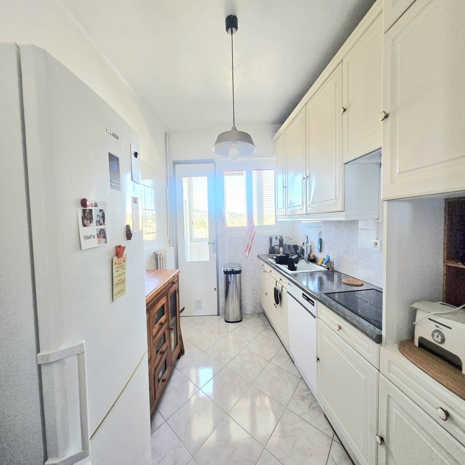 Vous disposerez également d’une cuisine séparée, fonctionnelle, donnant sur une loggia ainsi qu’un cellier, offrant des espaces de rangement supplémentaires appréciables.