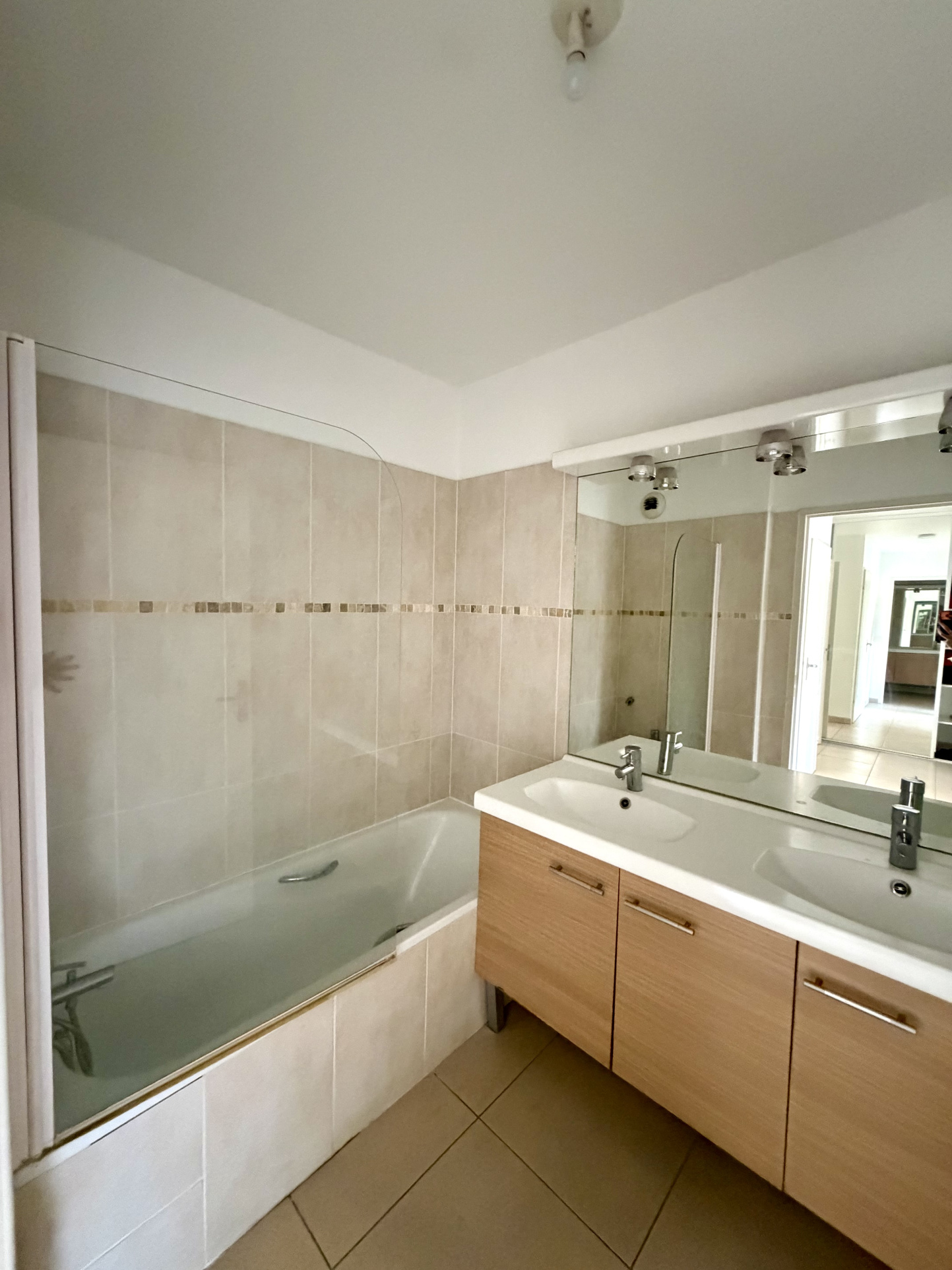 Il se compose d’un séjour lumineux avec cuisine équipée ouverte, de deux grandes chambres avec rangements, d’une salle de bain et de WC indépendants. Une grande terrasse donnant sur cour offre un extérieur paisible et agréable.