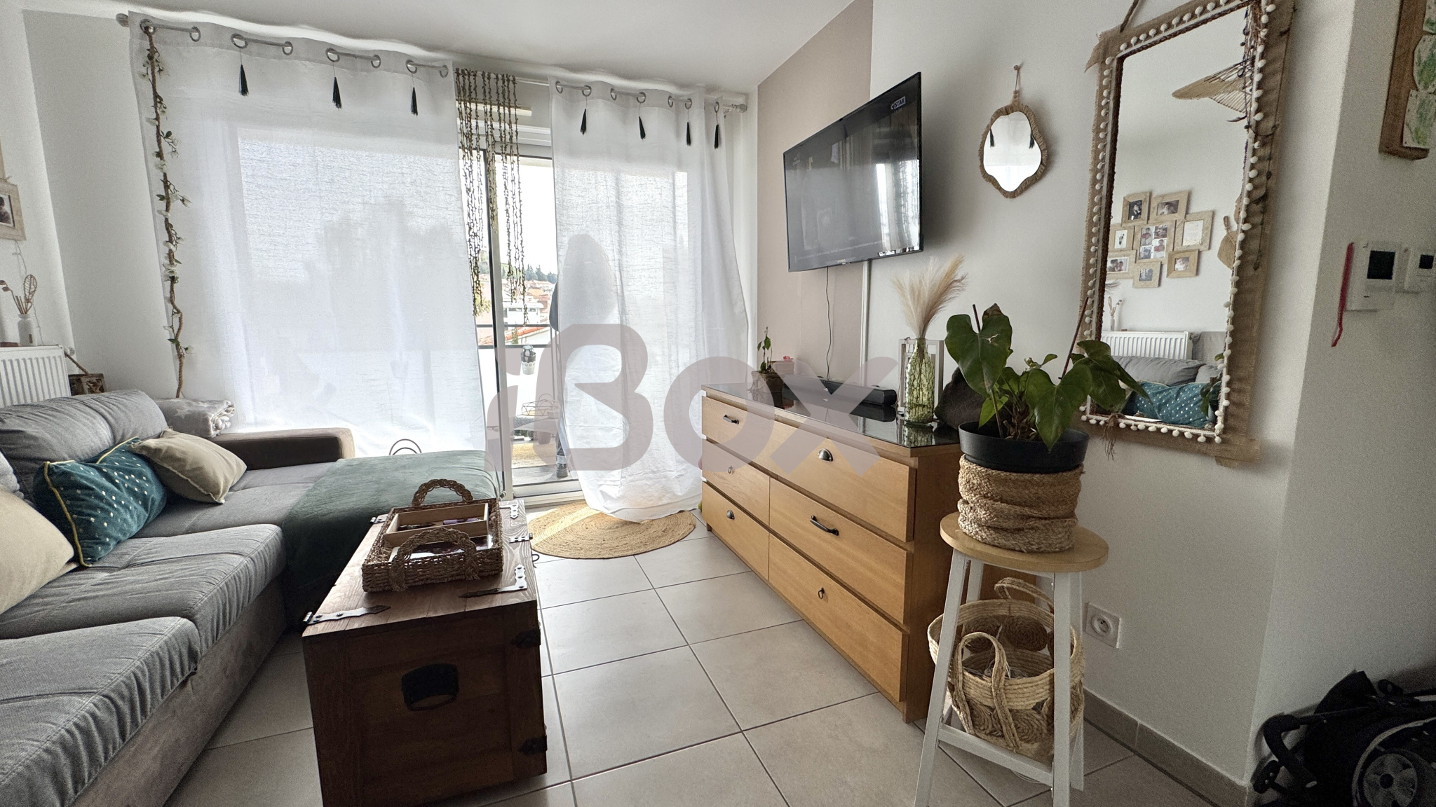 Appartement de Type 2 composé d'une entrée, un bel espace de vie lumineux avec un accès direct à la terrasse exposée Sud avec vue dégagée et une cuisine ouverte aménagée et équipée.