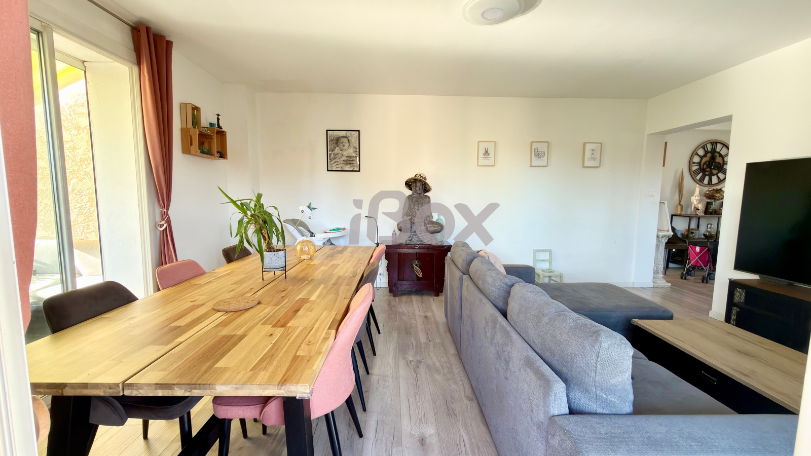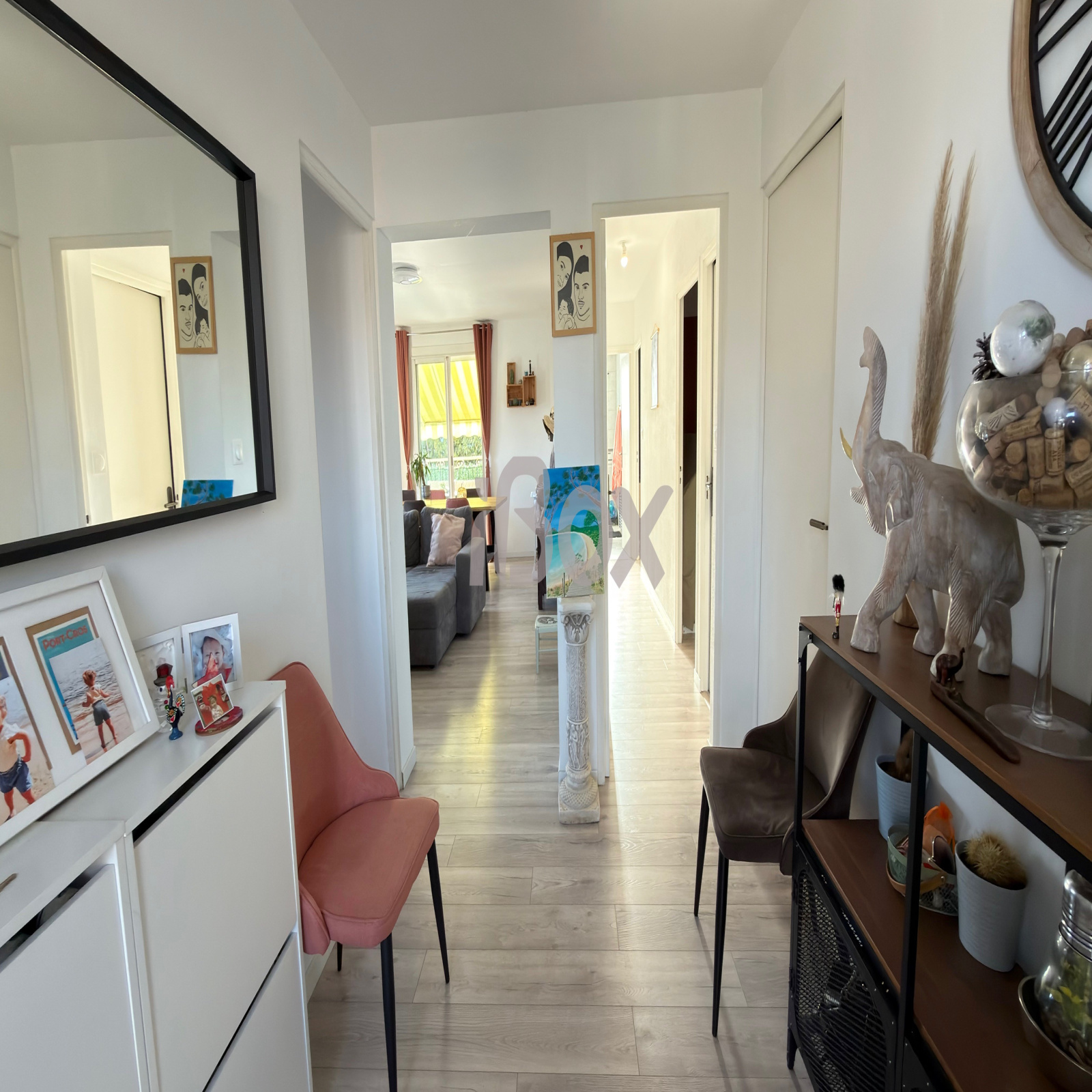 Il se compose d’une entrée, d’un séjour donnant sur une terrasse (2,30 m de profondeur et 3,60 m de largeur), d’une spacieuse cuisine indépendante, de trois chambres, d’une salle d’eau avec fenêtre et de WC séparés.