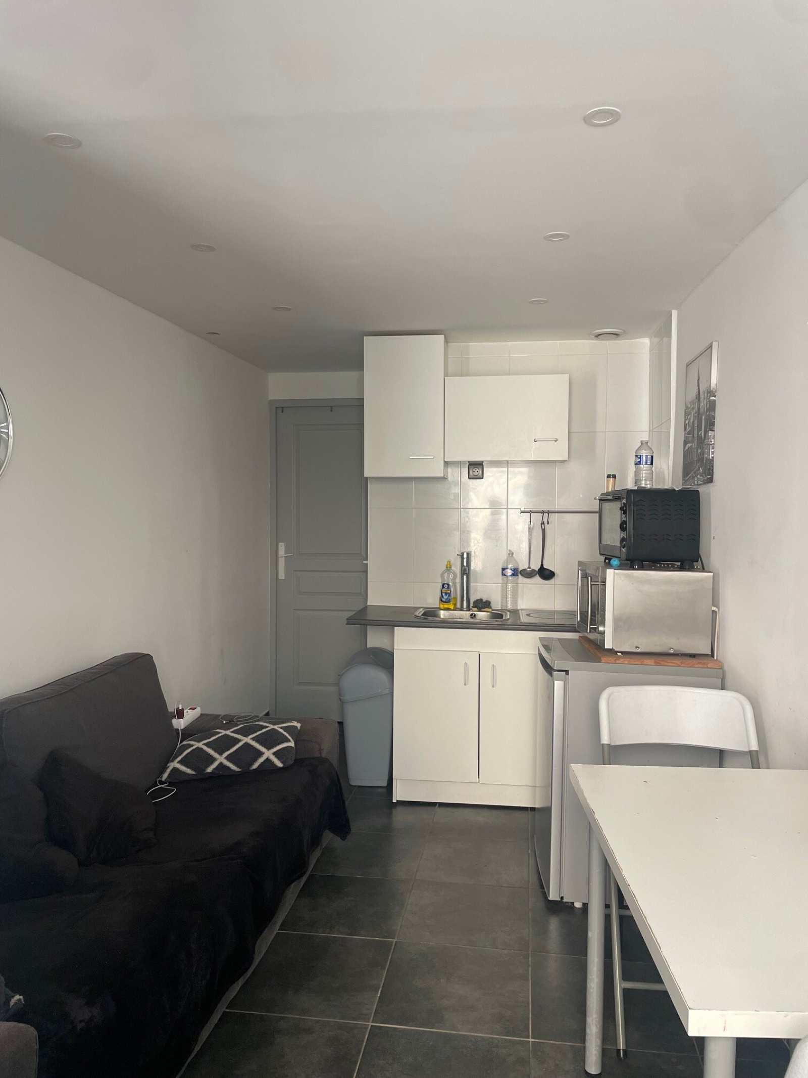 Appartement de type 1 bis de 21 m² en rez-de-chaussée, exposé ouest, comprenant : une pièce de vie, une chambre indépendante (sans fenêtre), une salle d'eau et WC.