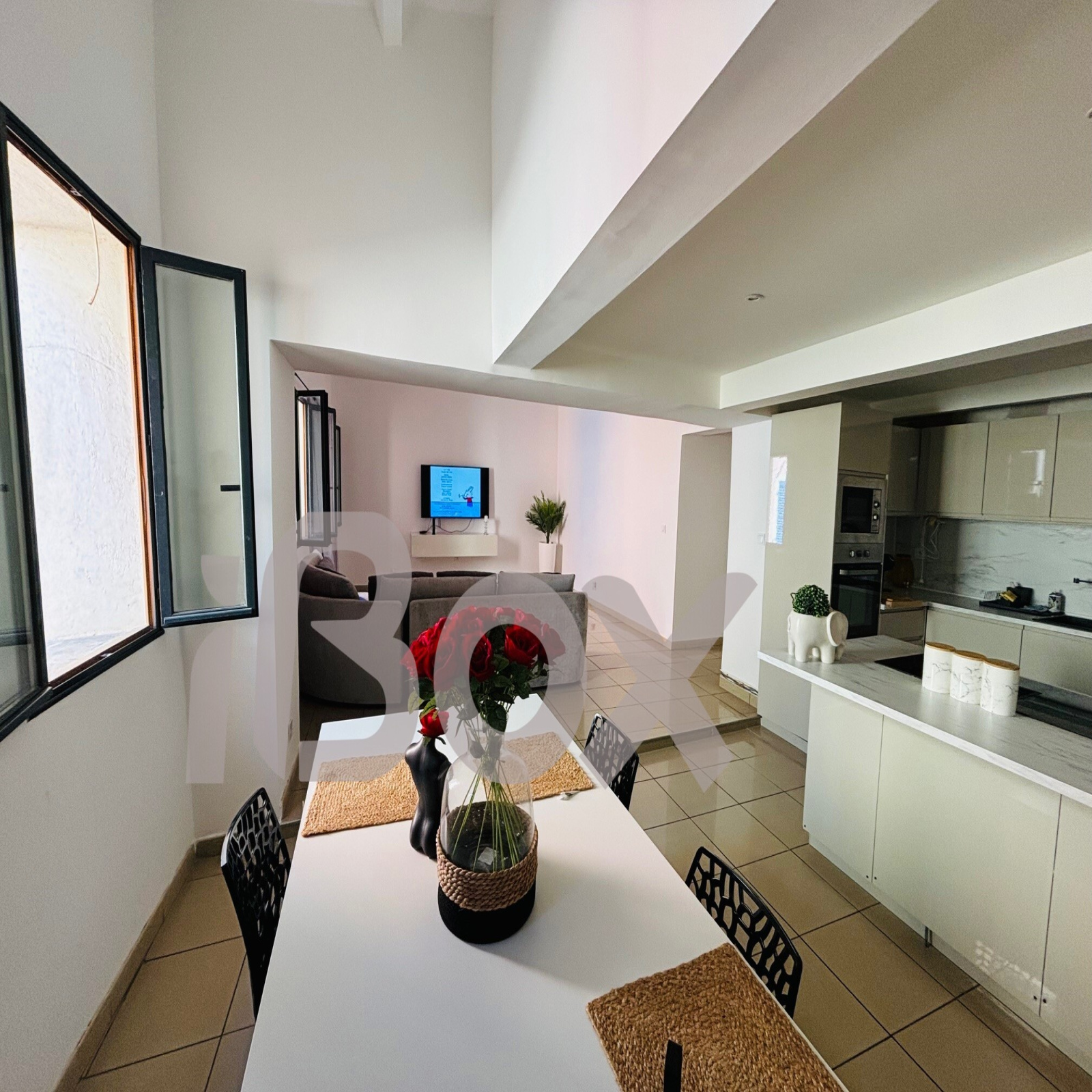 L'appartement se compose d'une vaste pièce de vie de 47 m² avec cuisine ouverte, de deux chambres ainsi que d'une salle d'eau avec WC. Un espace idéal pour profiter du confort et de la convivialité en plein cœur de la ville.