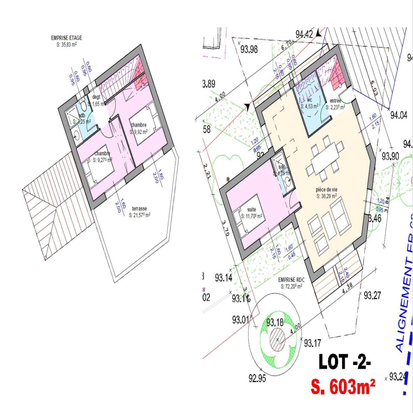 Chemin d'accès crée et viabilités en bordure.