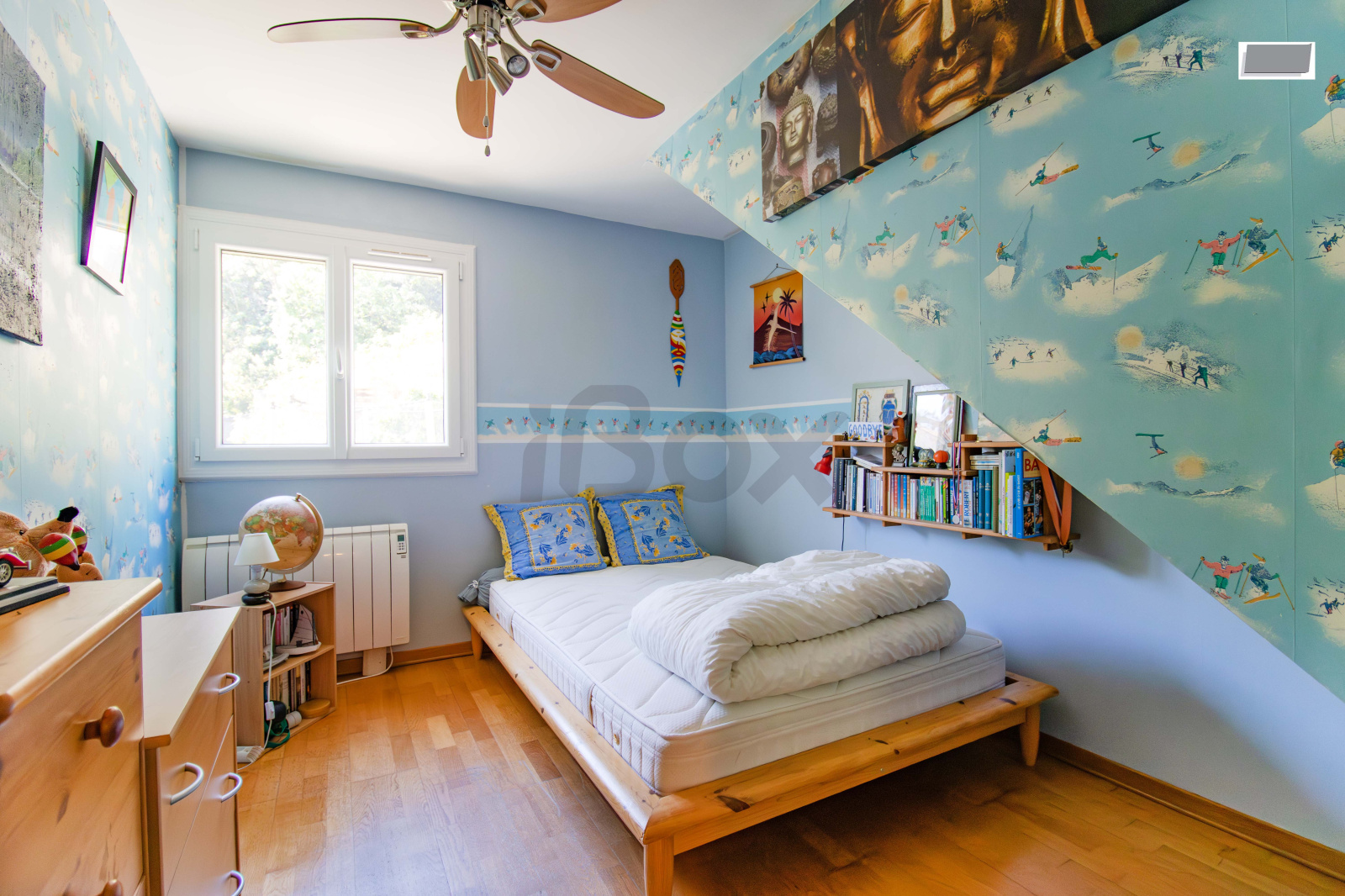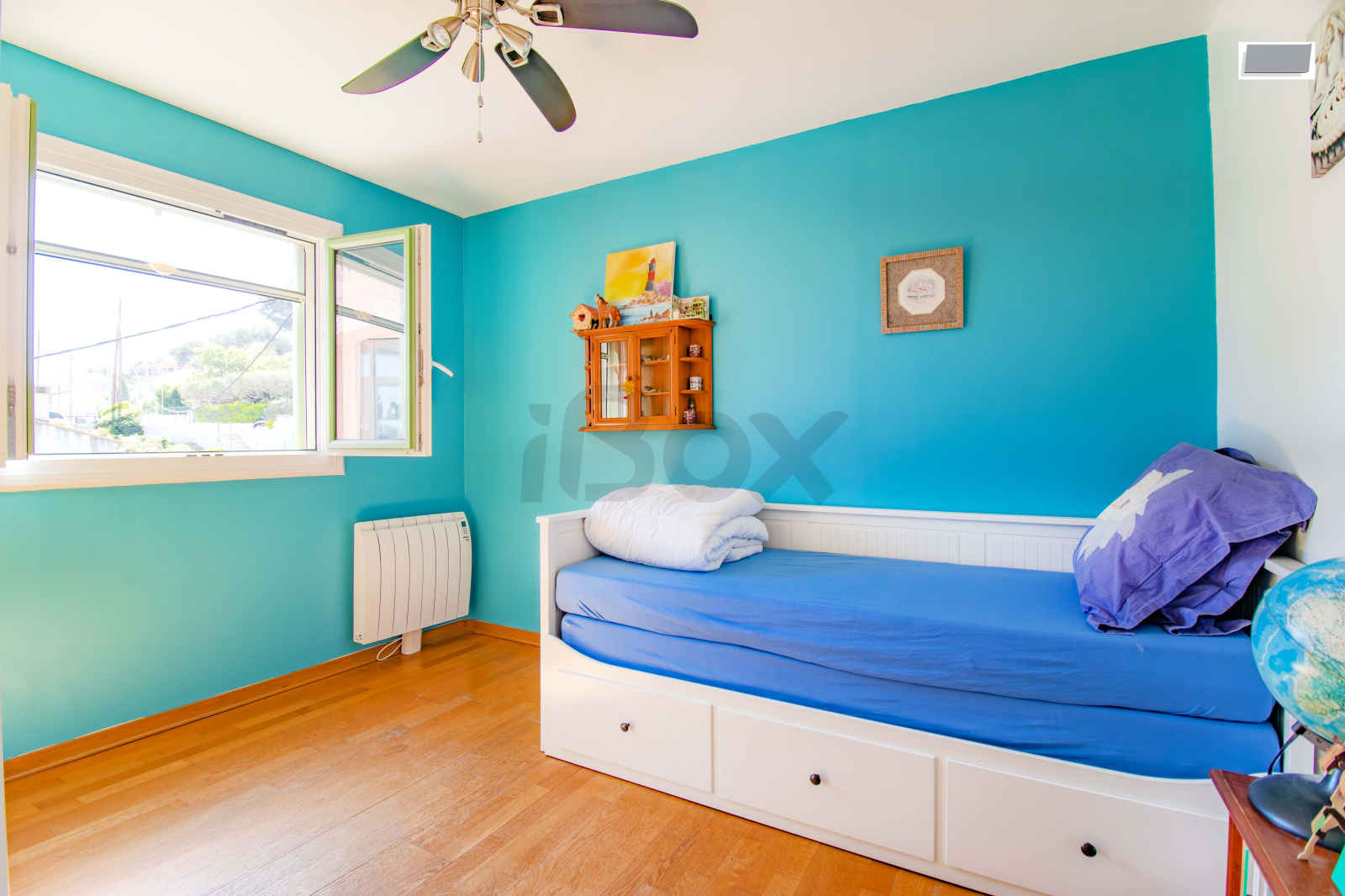 La maison se compose de trois chambres, dont une suite parentale ouvrant sur une loggia avec une vue dégagée sur la rade, ainsi que d’un bureau idéal pour le télétravail. Le séjour lumineux, ouvert sur la salle à manger, est agrémenté d’une cheminée avec insert, tandis que la cuisine est indépendante. Plusieurs pièces, dont le séjour et certaines chambres, sont climatisées, assurant un confort optimal en toute saison.