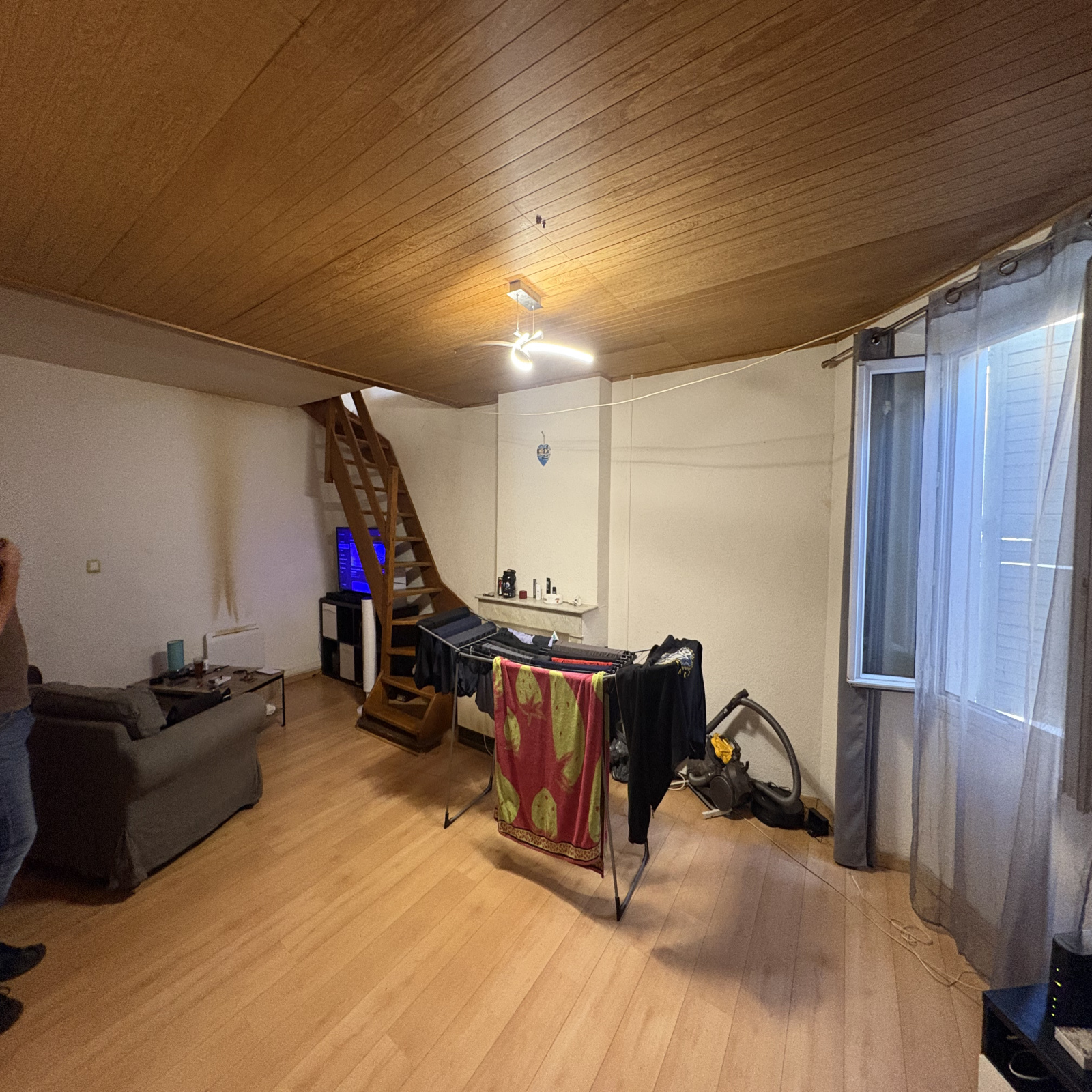 A l'étage une grande chambres mansardée.