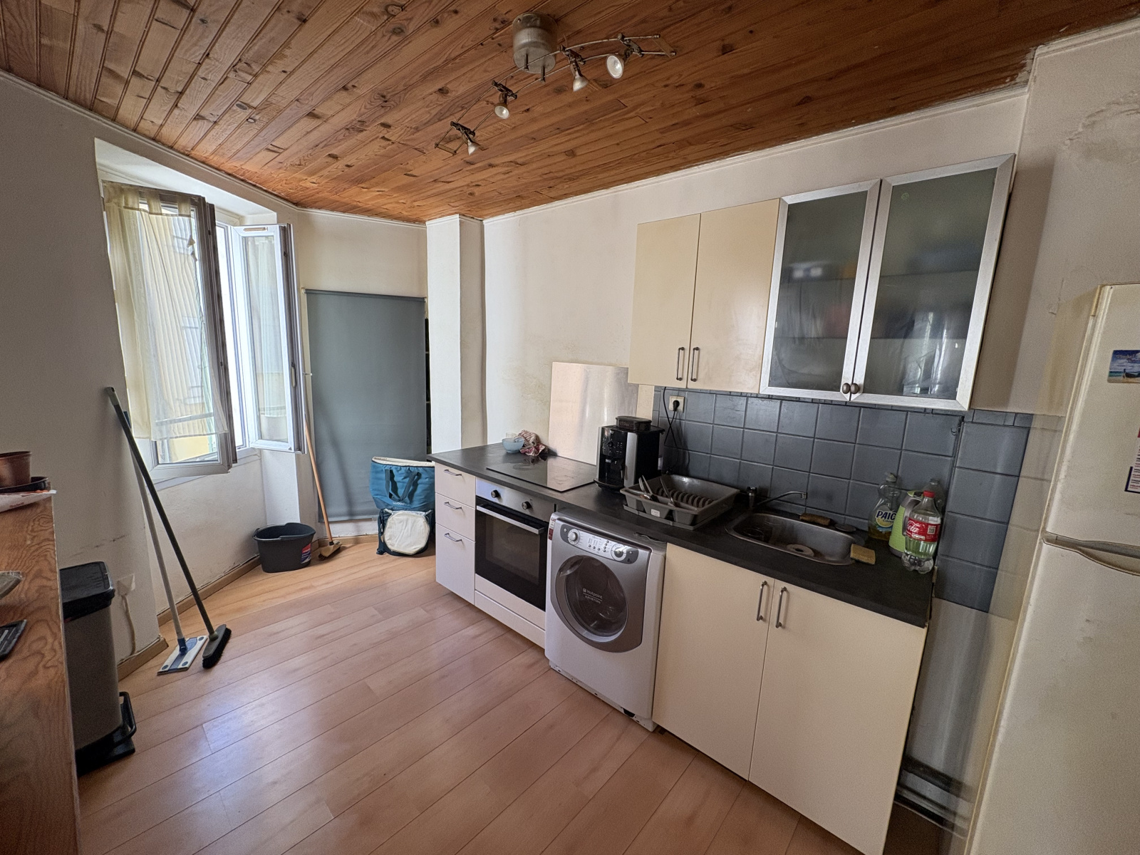 Idéalement situé au dernier étage d'un immeuble en plein coeur du centre ville de Cuers, appartement de type 2 en duplex d'une superficie de 57m² (40m² loi carrez). Il se compose d'un grand séjour climatisé, grande cuisine semi ouverte, salle d'eau avec wc.