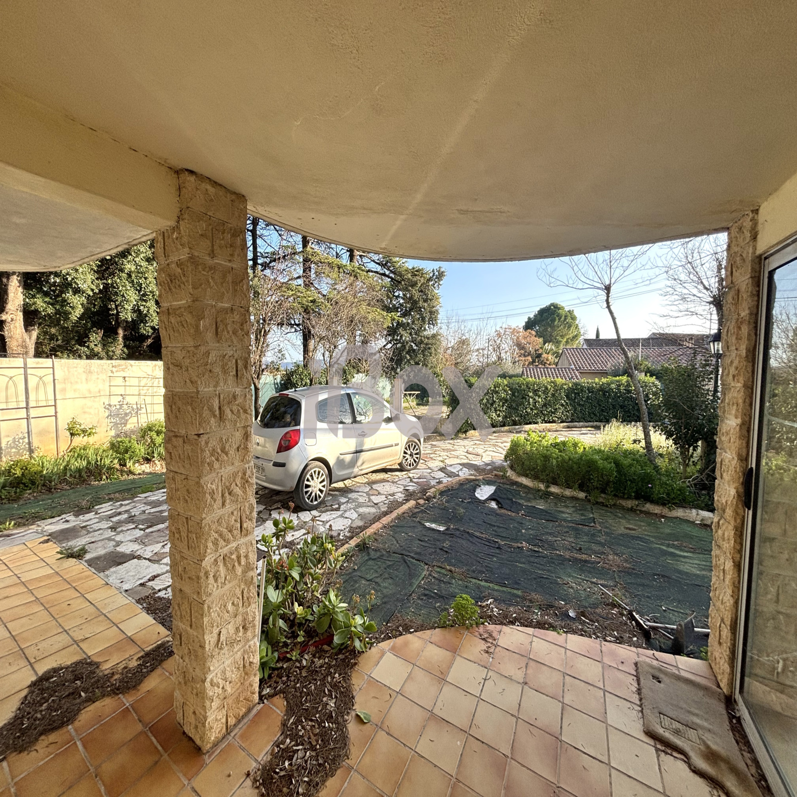 Hall d'entrée desservant un studio indépendant d'environ 31 m² avec pièce à vivre, cuisine, salle de bains, WC, loggia de 6 m². En rez de chaussée garage, cave et buanderie.