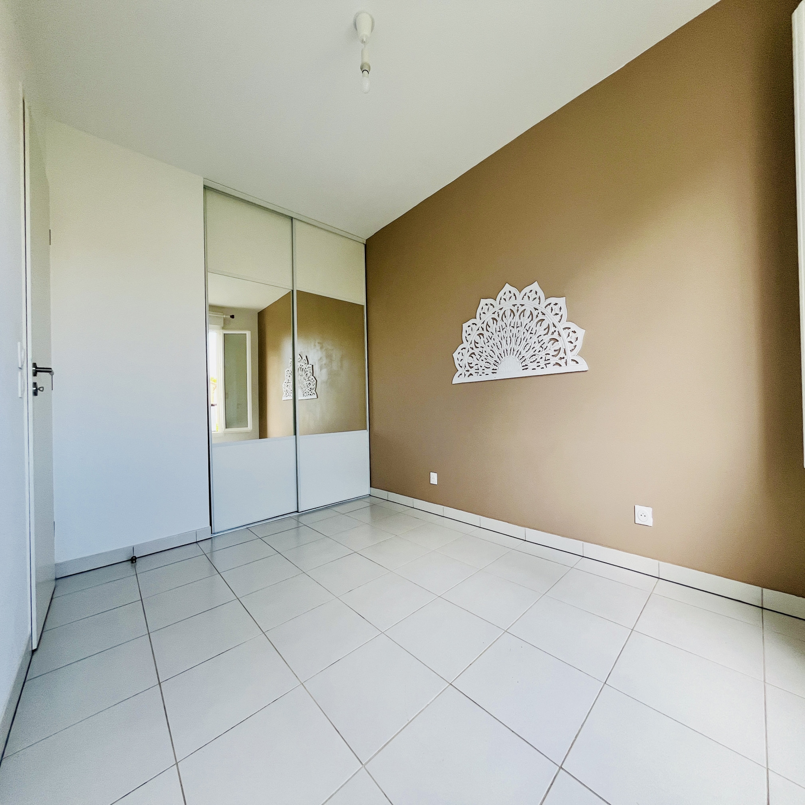Une chambre avec placard intégré, une salle d'eau avec wc et emplacement machine à laver.