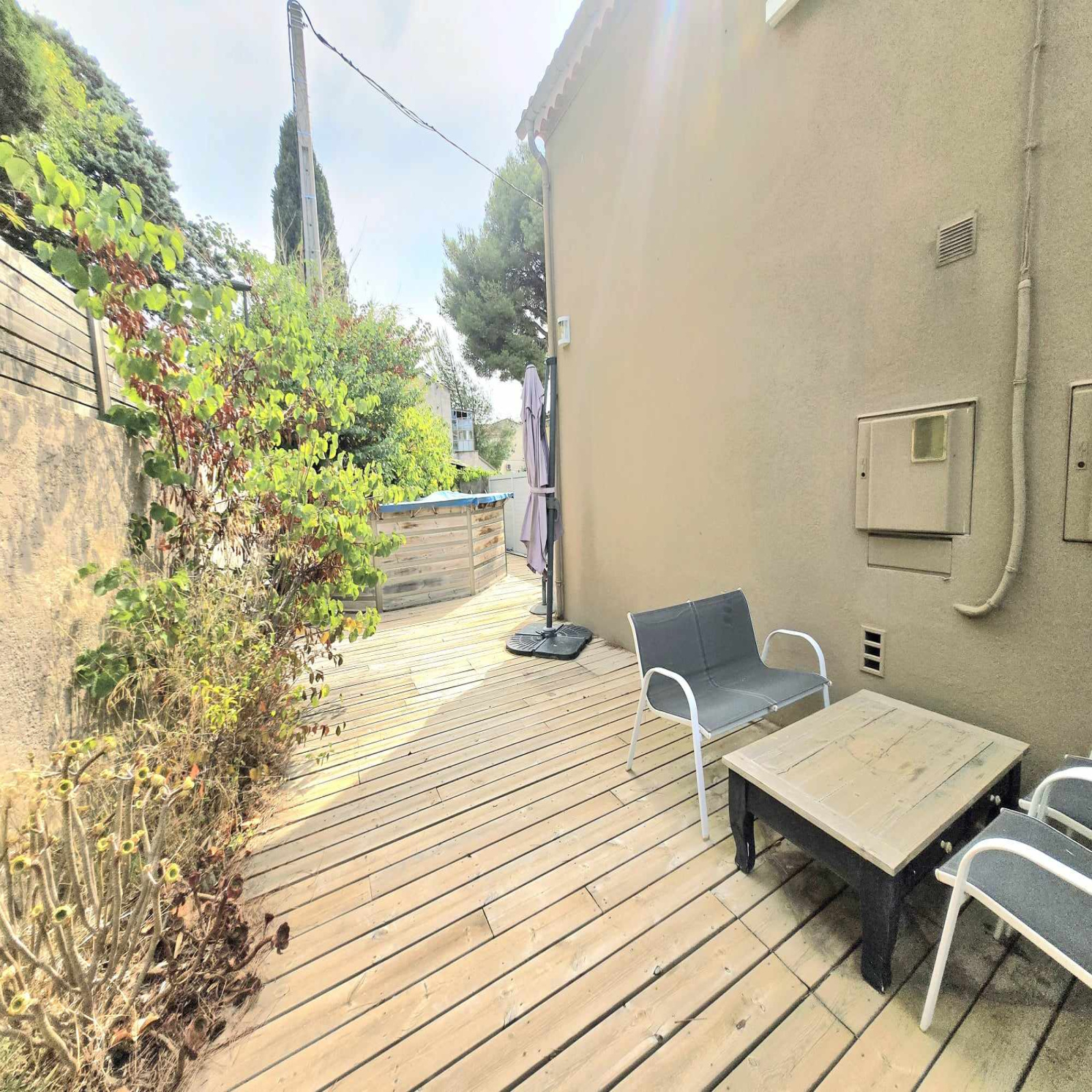 À l’extérieur, vous profiterez d’une terrasse de 9 m² ainsi que d’un jardin privatif de 109 m² sans vis-à-vis, exposé plein sud, agrémenté d’une piscine hors sol et barbecue pour vos moments de détente.