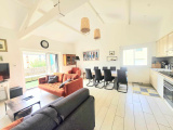 L’appartement se compose d’une agréable pièce de vie lumineuse avec belles hauteurs sous plafond et poutres apparentes, d’une cuisine ouverte sur le séjour, de deux chambres confortables, d’une salle de bains, d’un WC séparé, d’une buanderie ainsi que de nombreux rangements.